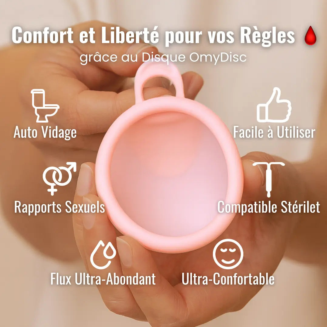 Como la mayoría de los discos menstruales, el disco reutilizable OmyDisc puede autovaciarse.Esto te permite vaciar tu protección sin tener que retirarla simplemente contrayendo tus músculos pélvicos (el periné).Es una de las grandes ventajas del disco: muy práctico para aquellas que tienen un flujo abundante, las que desean llevarlo más tiempo sin tener que lavarlo, especialmente en baños públicos o para evitar ensuciarse las manos durante la extracción.👉 Consulta nuestro artículo dedicado al autovaciado del disco menstrual para más información.